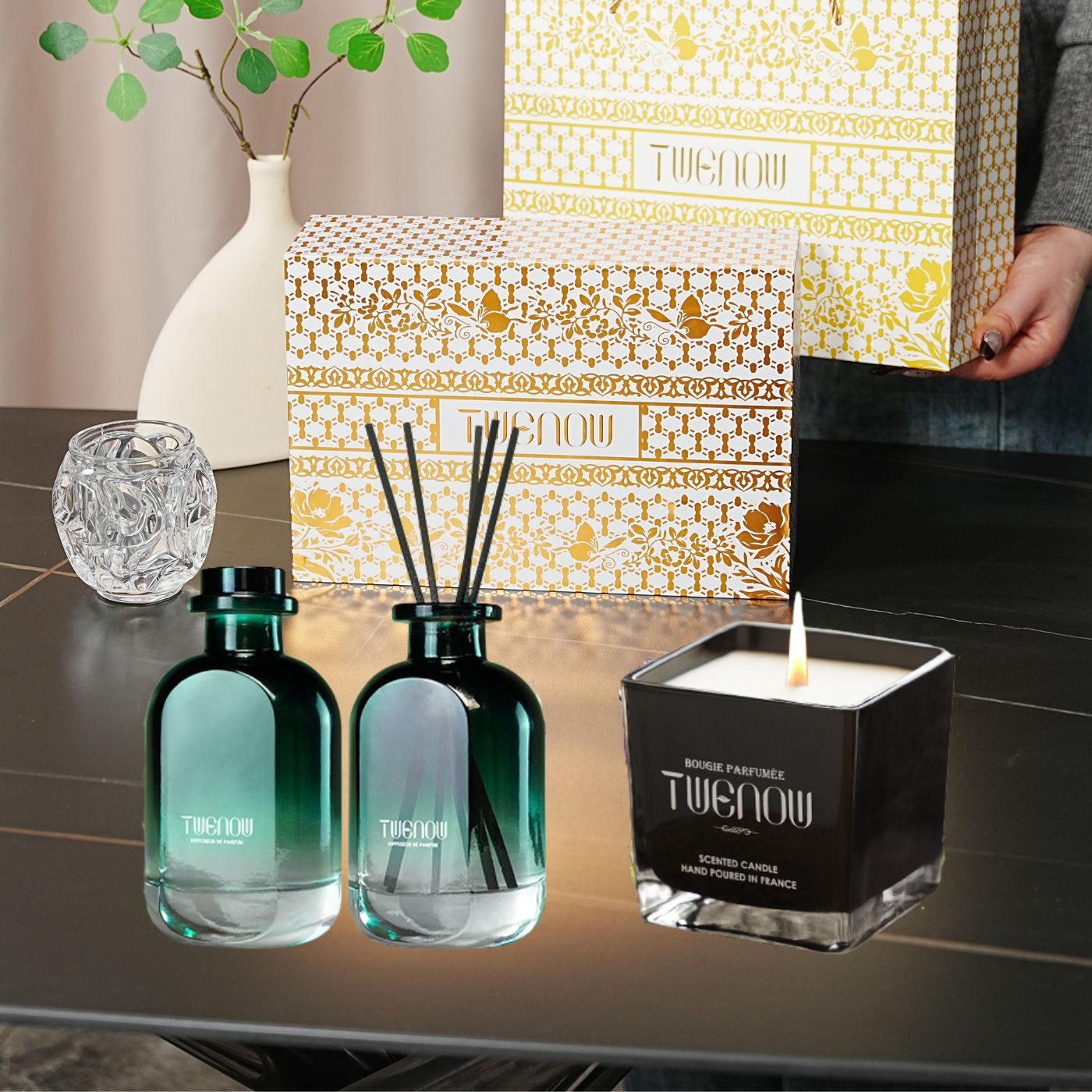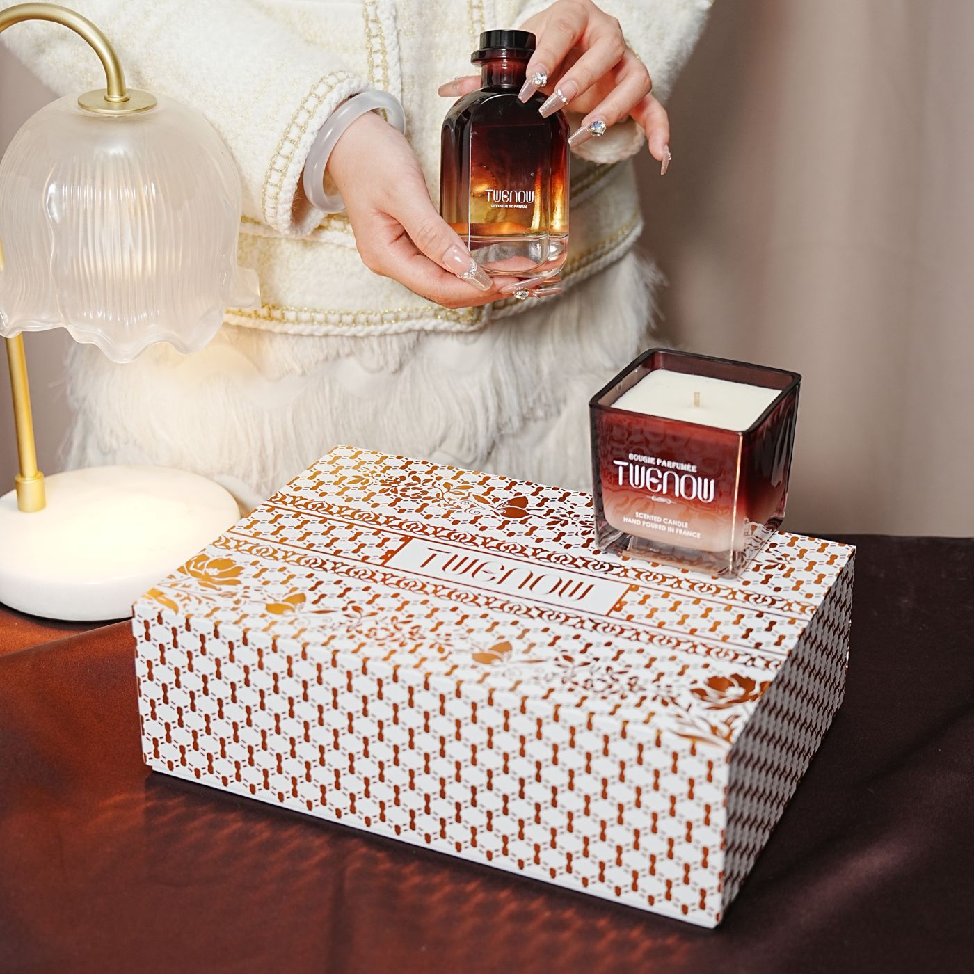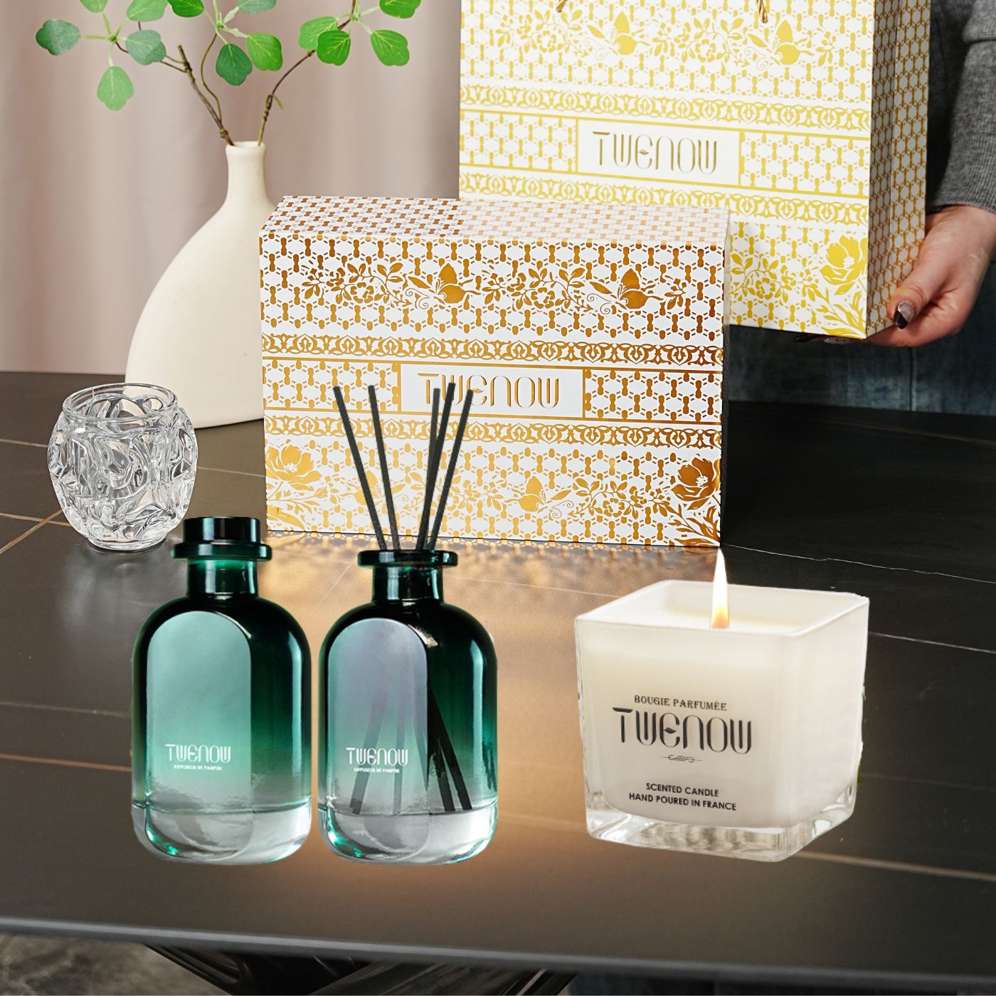 Offrez une expérience olfactive élégante et immersive avec le Coffret Aura. Ce duo haut de gamme, composé d’une bougie carrée 250 g et d’un diffuseur de parfum 150 ml, transforme chaque intérieur en un univers de caractère et de sophistication.